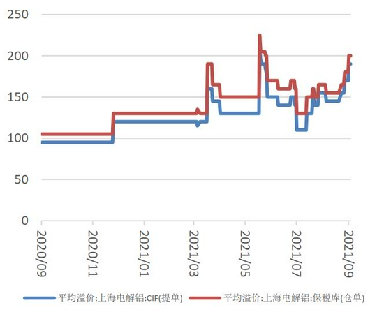 图6 上海保税库电解铝平均溢价(美元/吨)