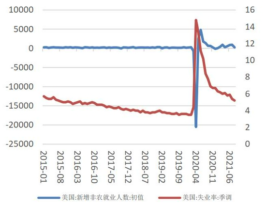 8月放缓的就业增速,并未满足美联储“实质性进一步进展”的条件,9月美联储会议宣布缩减QE细节的概率降低。但根据鲍威尔央行年会的讲话,今年年底开始缩减QE预期不变。9月6日以后,美国将完全停发联邦失业救济金,因此9月非农就业报告或将更能反应劳动市场,进而美联储11月会议宣布缩减QE概率增加。