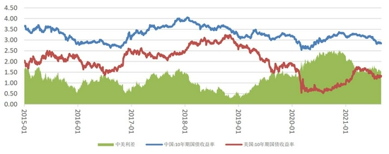 图13 中国与美国10年期国债收益率(%)