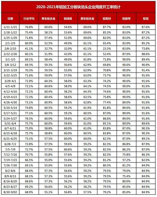 6.铝加工:8月限电水灾疫情影响,9月关注消费旺季到来