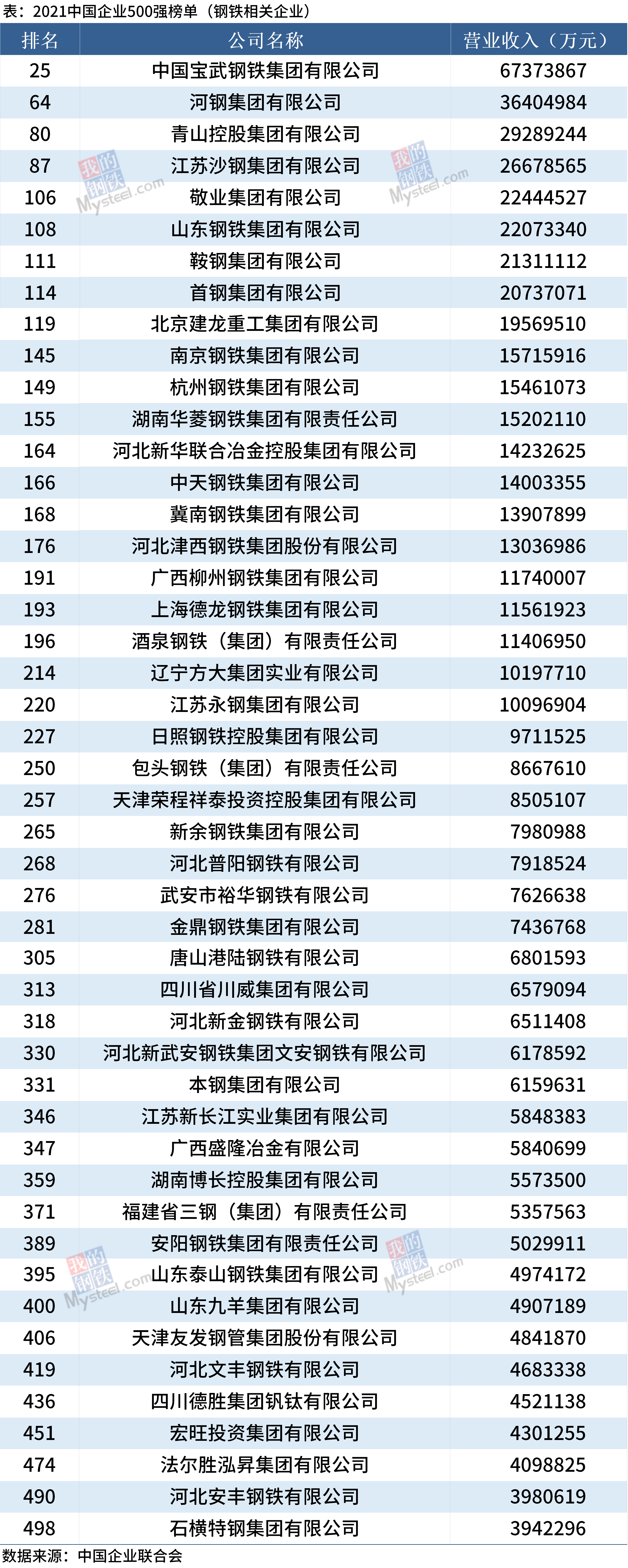 原标题:47家钢铁相关企业上榜2021中国企业500强