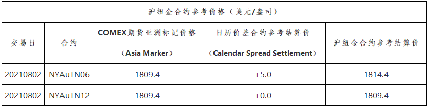 8月2日NYAuTN06合约的沪纽金参考结算价为1814.4美元/盎司,NYAuTN12合约的沪纽金参考结算价1809.4美元/盎司;