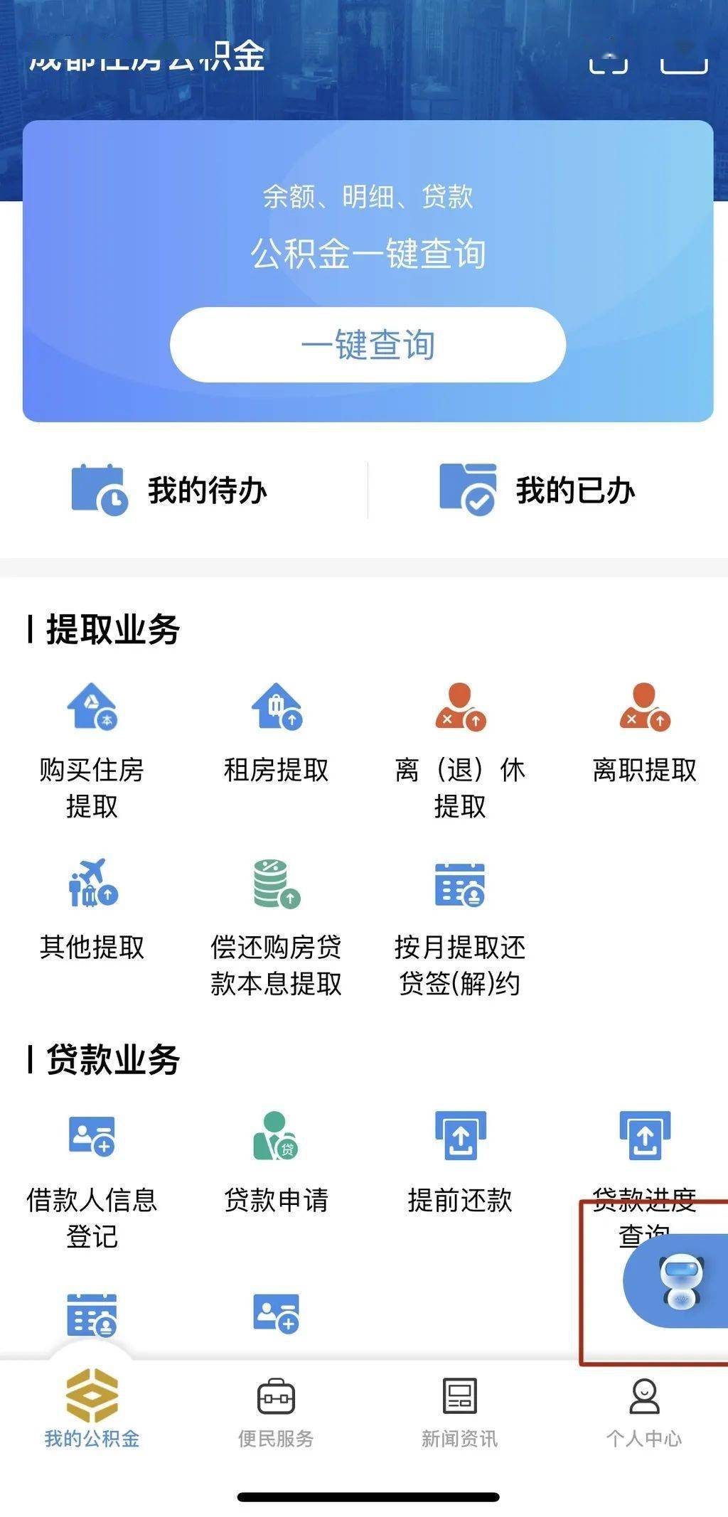 ▲点击成都住房公积金app右侧熊猫浮标即可进入智能客服咨询