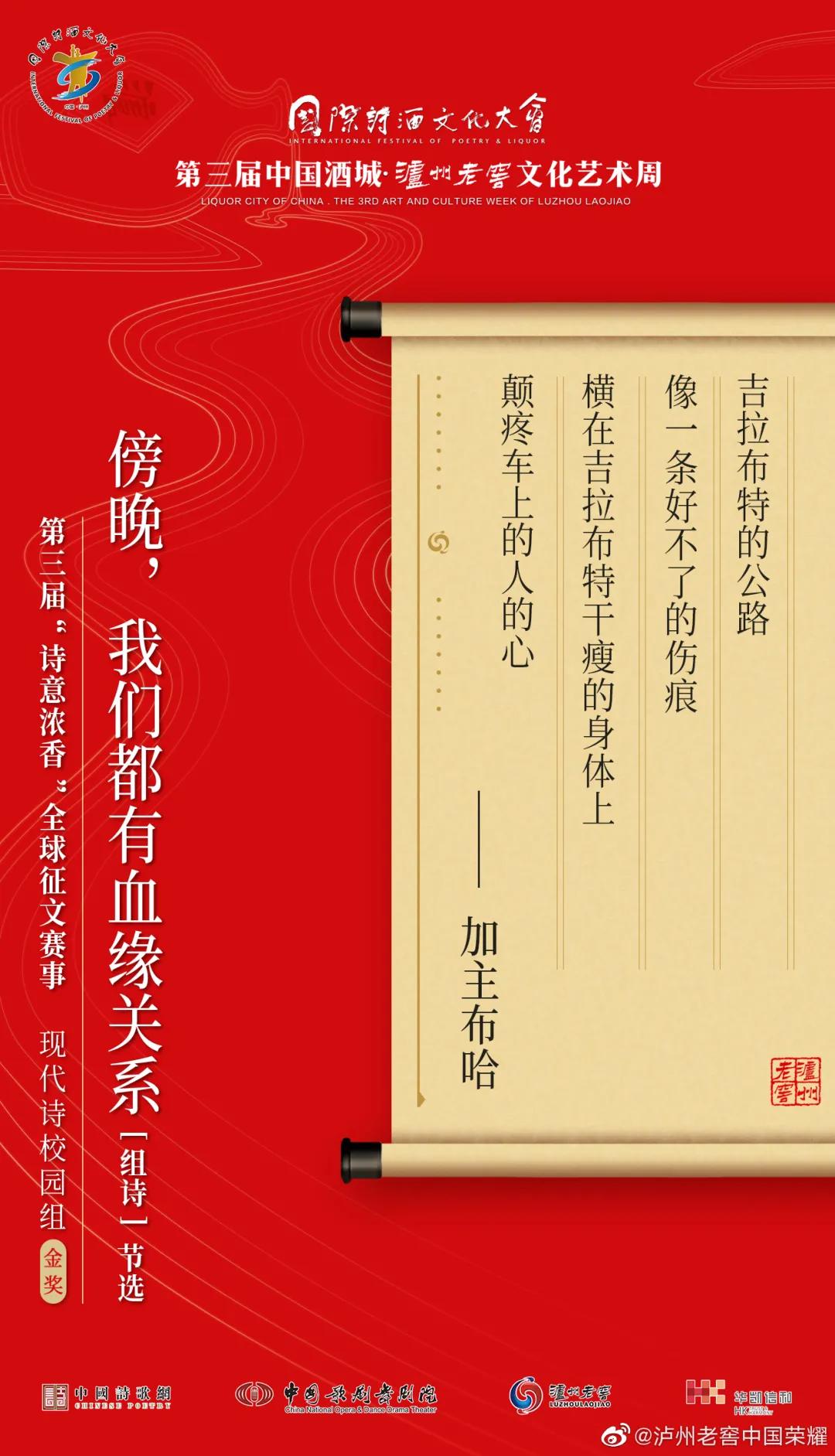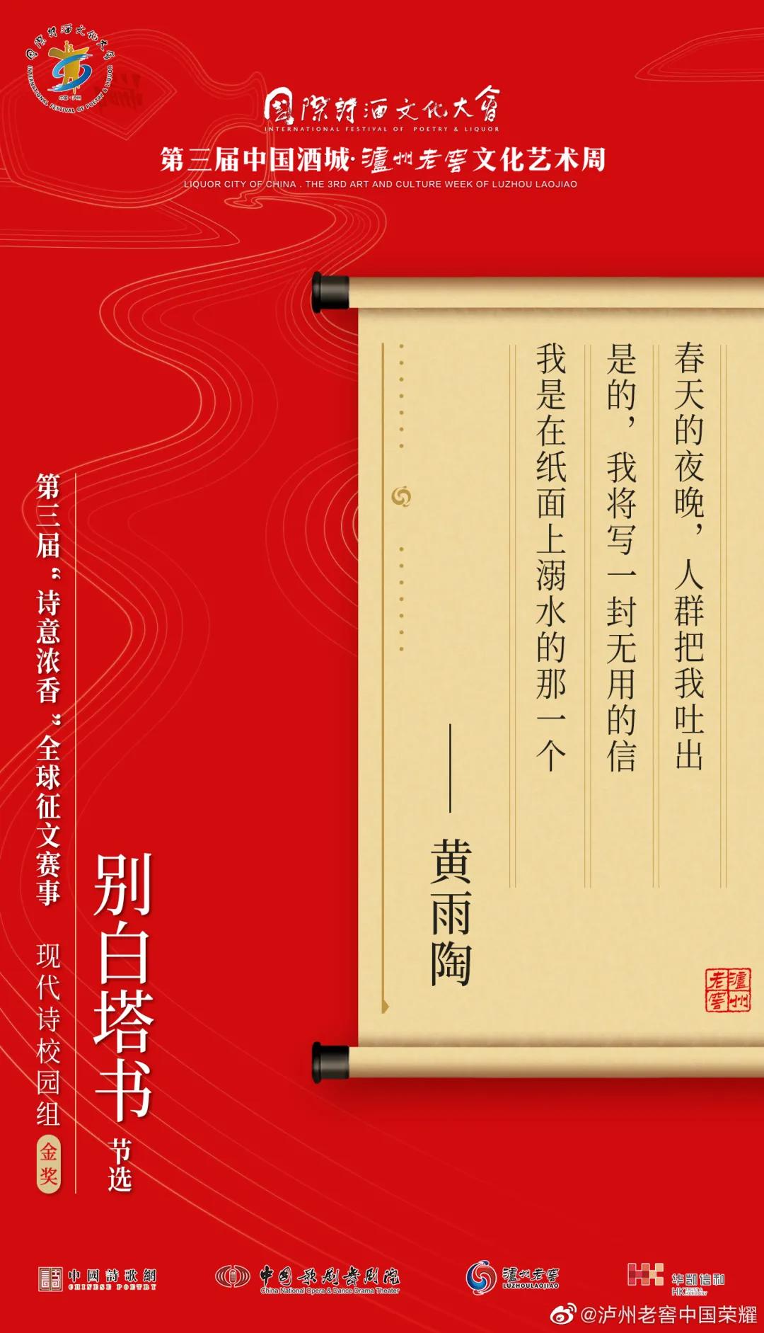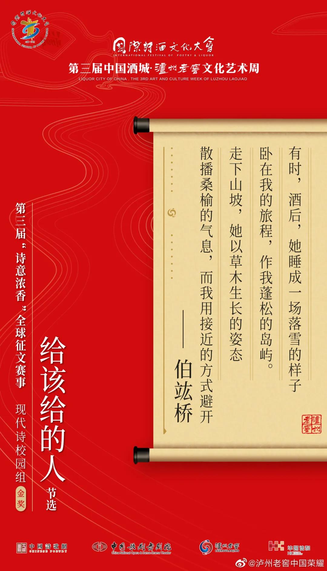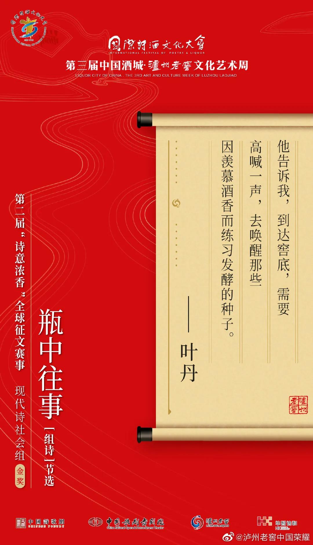什么样的诗歌最具温暖人心的力量?什么样的诗歌是诗酒文化的“最佳代言”?让我们相约国际诗酒文化大会第五届中国酒城·泸州老窖文化艺术周,共同揭晓答案!
