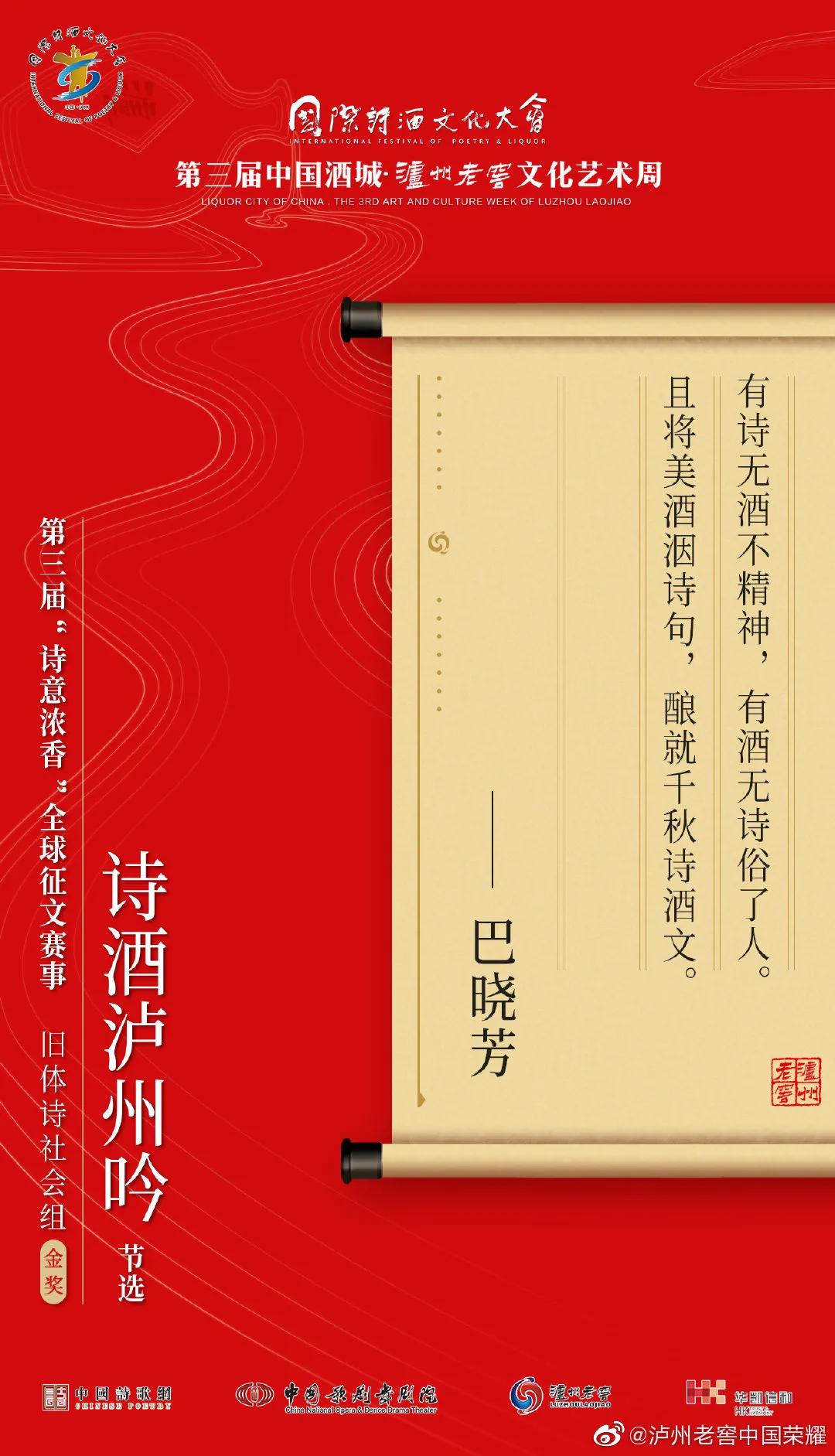 今年国际诗酒文化大会组委会还联合四川大学文学与新闻学院、四川大学中国诗歌研究院新增设立“1573金沙诗歌奖”,以奖励在诗歌作品评论与诗歌文献抢救、保藏、整理等方面有突出贡献的个人、团体。同时,大会联合金沙诗歌奖组委会启动了以“起源:酒与诗的合唱”为主题的首届全球诗酒文化学术论文征集大赛。值得关注的是,“1573金沙诗歌奖”首届全球诗酒文化学术论文征集大赛一、二等奖也将在本次泸州老窖文化艺术周期间重磅揭晓。