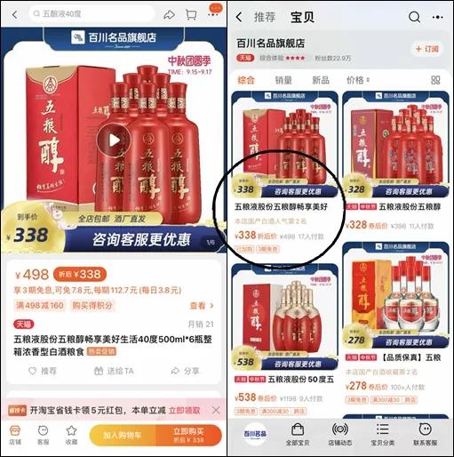 不过,《消费者报道》在百川名品旗舰店旗舰店浏览发现,其近期又重新上架了五粮液畅想美好生活40度浓香型白酒,但并未标明该产品的生产日期。新上架的该款产品售价为498元,中秋节优惠价格则为338元,月销21件。信息显示,该款产品为该店国产白酒人气第二名。