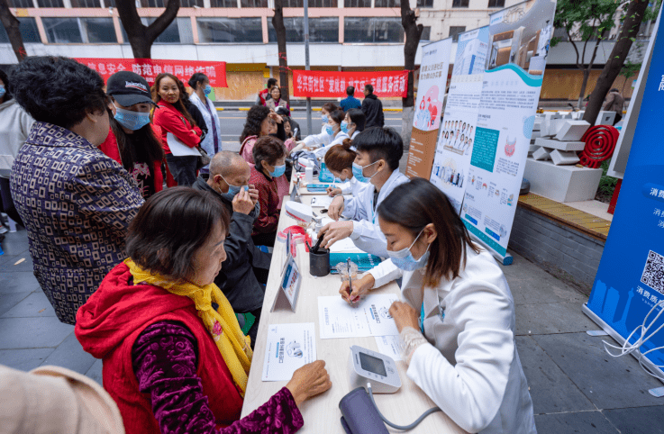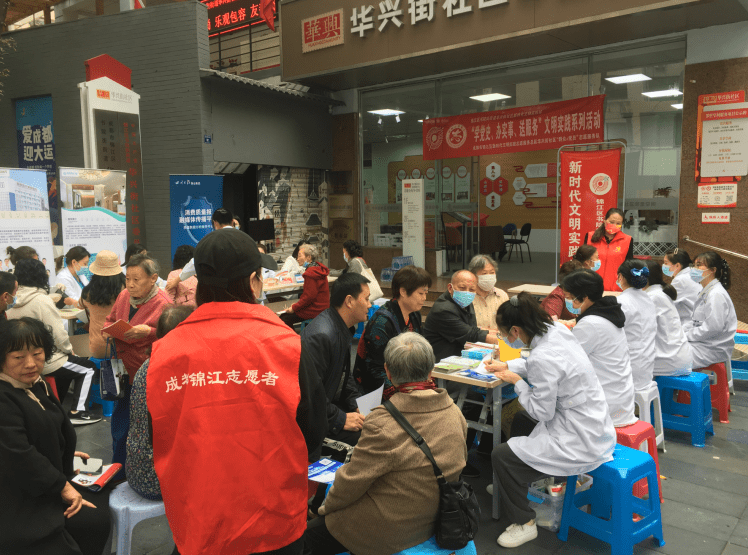 群众在哪里,为民服务就延伸到哪里。为深入推进党史学习教育“我为群众办实事”实践活动出成果、见实效,10月12日,成都市锦江区书院街街道办事处、书院街街道华兴街社区联合春熙社区卫生服务中心、成都画美医疗美容医院(皮肤科)、成都画美团圆口腔、成都市第二人民医院等单位,开展了以“健康义诊进社区 我为群众办实事”为主题的便民服务活动,让当地居民足不出社区,就能享受方便、快捷、温馨的免费健康体检、义诊服务。