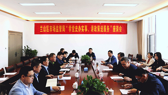 兰山区市场监管局党组书记、局长齐宝进就此次座谈会介绍了市场监管部门助推企业发展的相关职能和政策,齐宝进表示,区市场监管局将着力提升服务职能,深入企业讲政策、送服务、促发展,全力推进质量品牌提升,强化标准化引领作用,加强知识产权应用及保护,多举并措,服务企业发展,严格做好“四到”:不叫不到、随叫随到、服务周到、说到做到。