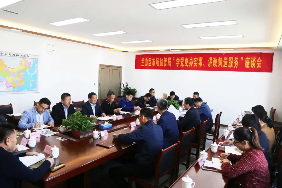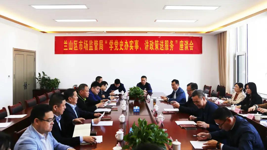 深入推进标准化综合改革和质量品牌建设,推动全局党史学习教育和纪律作风整顿活动走深走实。10月12日上午,兰山区市场监管局党组书记、局长齐宝进,兰山区市场监管局党组成员、副局长李文全带领区市场监管局产品质量发展科、知识产权运用促进科、标准化科、信用监管科、认证认可科、区市场监管局经开所等相关科室主要负责人,在兰山经开区莱克科技有限公司会议室召开“学党史办实事、讲政策送服务”座谈会,管委会主任、党工委副书记孙鹏飞,党工委委员、管委会副主任郑峰,党工委委员、管委会副主任杨晋,综合执法局局长刘德祥参加座谈会。