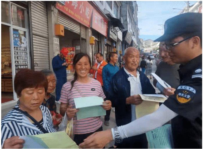 雄关义警向过往群众发放网络安全宣传资料