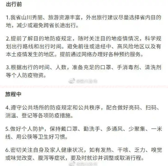 出行前,要及时了解旅游目的地疫情防控、交通路况、天气变化等信息,密切关注卫健、应急、文旅、气象等部门发布的出行提示信息,加强风险评估,选择适当的出行方式,合理规划行程,尽量避开热门景区和出行高峰时段哦~