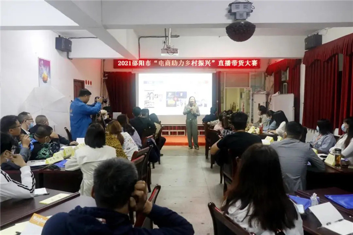 为助力乡村振兴战略,聚焦农产品上行,构建电商助力乡村振兴长效机制。10月11日上午,2021邵阳市“电商助力 乡村振兴”直播带货大赛正式开幕。来自湖南邵阳各县市区的50余名直播学员齐聚市智丰职业技术学校,未来五日他们将在这里接受赛事规则、直播带货、短视频制作、引流等专业技能的赛前辅导。