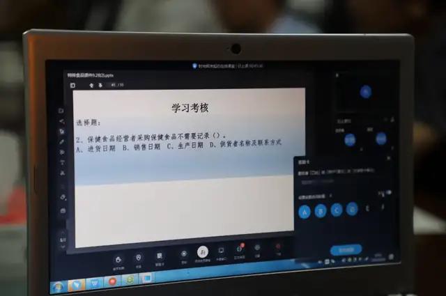 本次“食安夜校”线上培训以课程为核心、以食品从业人员为中心、以授课科长为主导,将培训内容与从业人员经营实际相结合,真正让从业者做到学以致用。授课前,将本次培训的学习目标发布到微信监管群,使从业人员学习有方向,课前5分钟,提醒培训对象上线并及时签到,对有多名从业人员的经营单位要求其他人同时参加培训。授课以“PPT+在线直播+在线考试+微信群”的方式开展培训,整个培训过程用了大量的图片、案例和视频,力求避免枯燥的讲解。在线考试环节,参加培训的人员积极参与答题,多个题目的答对率为100%,达到了预期的培训目的。对个别答错率较高的题目进行了重点讲解,加深了从业人员对本次课堂知识的理解。同时积极组织对学习情况的线上线下督导,适时做好从业人员上线学习状态的监控,对部分药店和超市学习情况进行了现场督导,并将相关情况在微信监管群进行了实时通报。