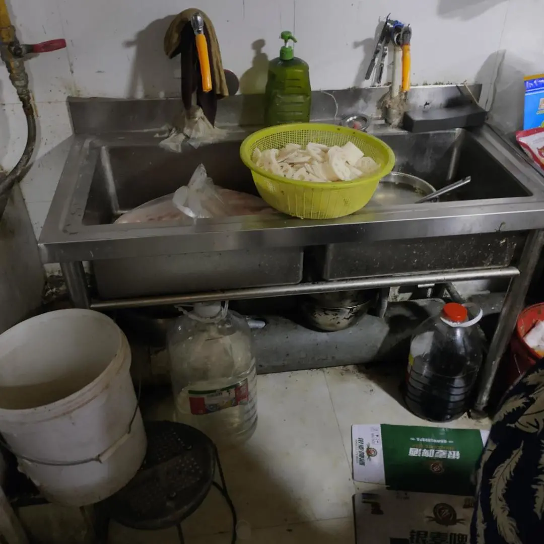 地漏不归范、垃圾桶没盖,食材乱堆放。