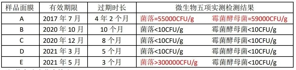 经过测试发现,在5款过期面膜中,有两款超标,一款是过期4年2个月的面膜,菌落总数为55000CFU/g,霉菌总数为59000CFU/g;