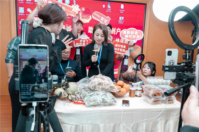 来自金石镇飞黄村的曾希玲是第一次进行直播,坐在直播镜头前一开始有点紧张、不自然,在专业直播老师的一步步的引导下,她渐入佳境,开始跟直播间的观众互动。“宝宝们,这是我自己家种的橘子,纯绿色食品,果汁特别丰富,喜欢的动起来!”曾希玲表示,这次学习了解到了新的营销模式,尤其是通过此次实战,让她更有信心发展电商产业,用自己的力量带领其他村民一起致富。