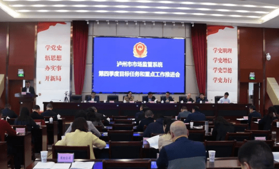 2021年10月15日,泸州市市场监管系统召开第四季度目标任务和重点工作推进会。会议全面总结了前三季度工作,安排部署第四季度重点工作。市市场监管局党组书记、局长赖旭刚出席会议并讲话。